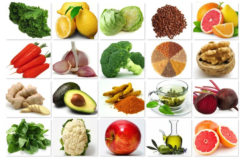 - سبزیها و میوهها: بهویژه سبزیجات برگسبز، رنگی، میوههای متنوع — برای تأمین ویتامینها، مواد معدنی، آنتیاکسیدانها، کاهش التهاب.